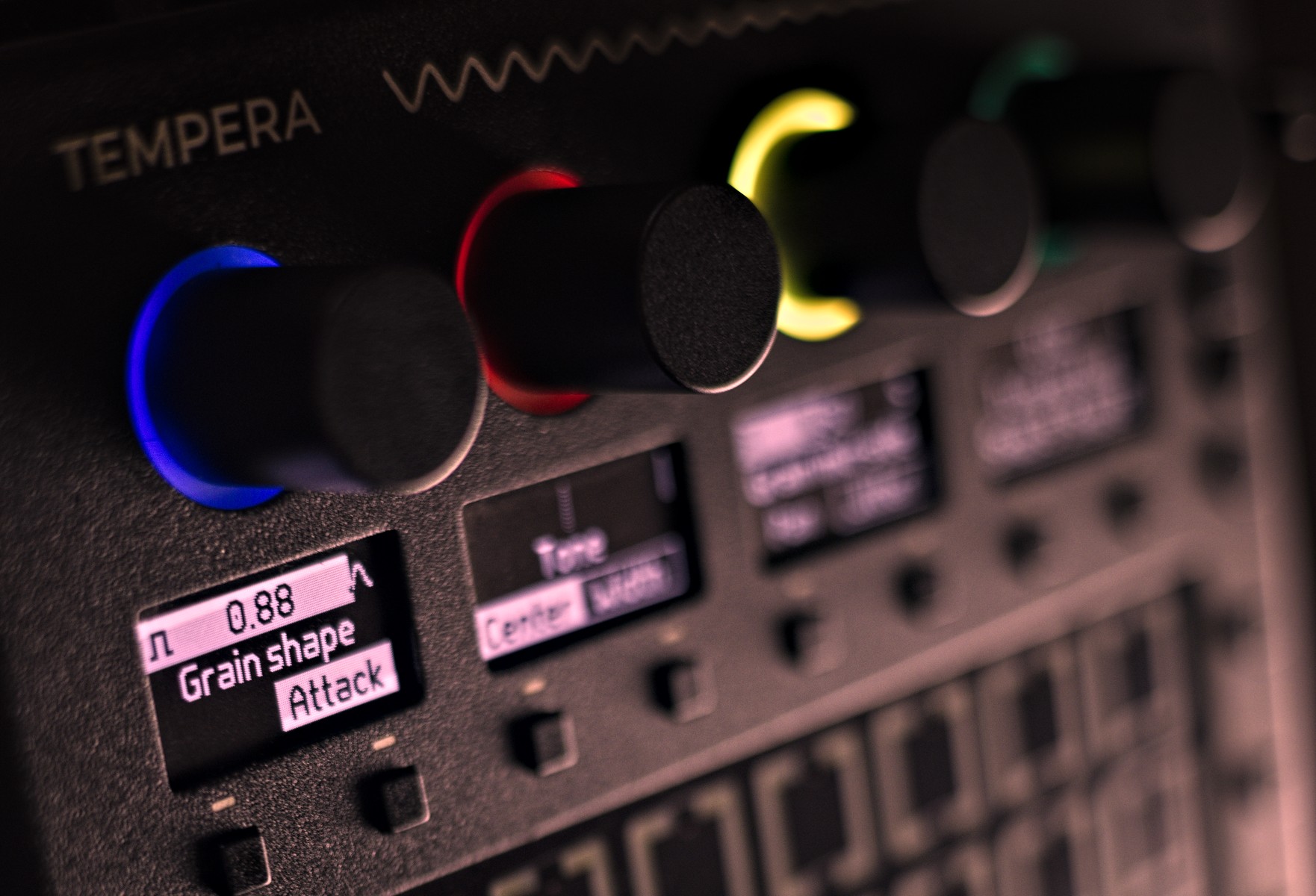 Tempera is packed with connectivity. Loud and clear audio is delivered by a compact arrangement of two TS jacks as left+right, and a stereo headphones jack. You can sample incoming audio in mono or stereo, accommodating line-in signals, instrument signal, microphones, and pickups.