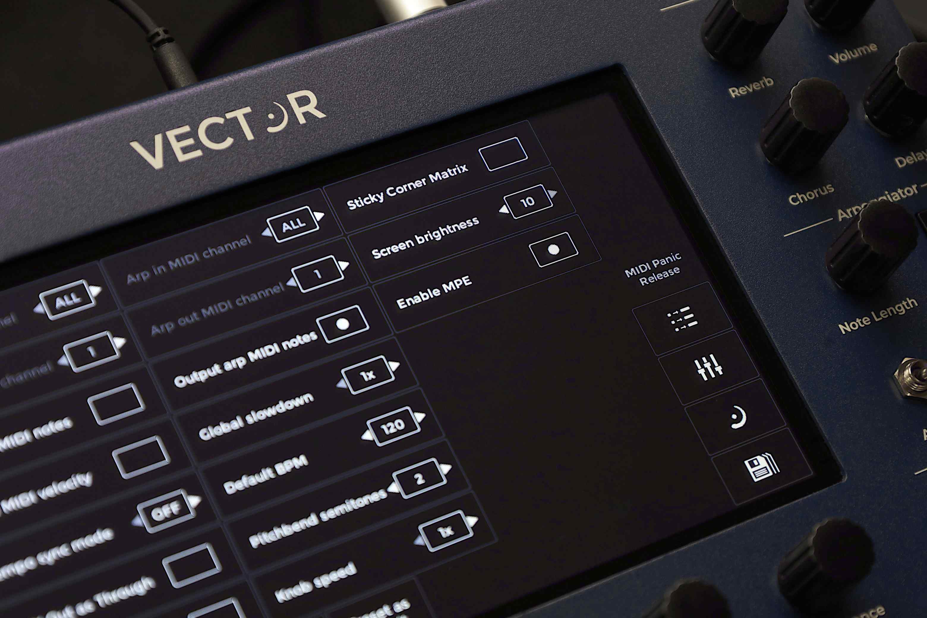 Stand-alone, Send and Receive MIDI tempo modes to sync Vector with your devices.